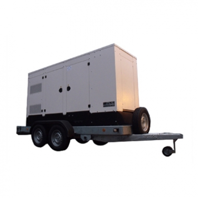 These 100kva fast tow generators a fully-enclosed, super-silent, true switchless, multi-voltage generating set, providing 400V / 230V / 110V simultaneously. Is features a side mounted recessed distrubution box, individual circuit breaker overload protection, CEM digital controller, AVR controlled, bunded base and is mounted on a twin axle fast-tow trailer unit.